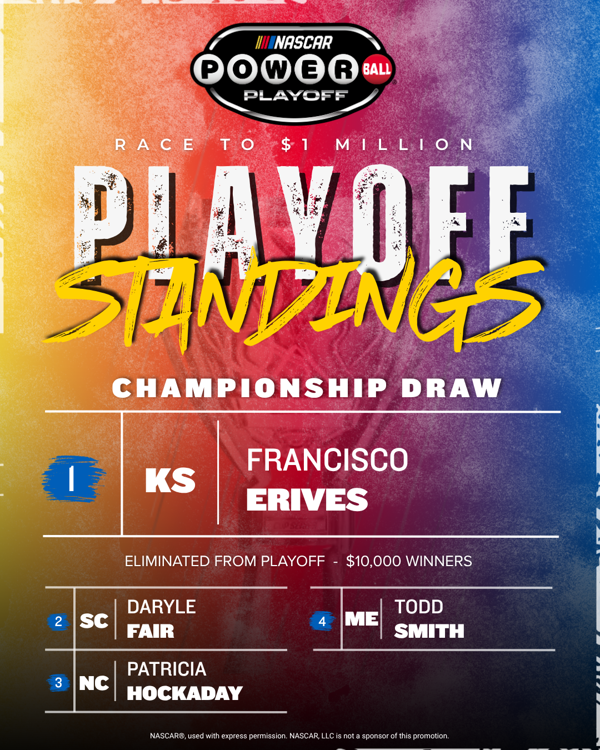 Players who want to enter the NASCAR Powerball Playoff next year should follow their local lottery and the NASCAR Powerball Playoff Facebook and Instagram for 2026 entry dates.